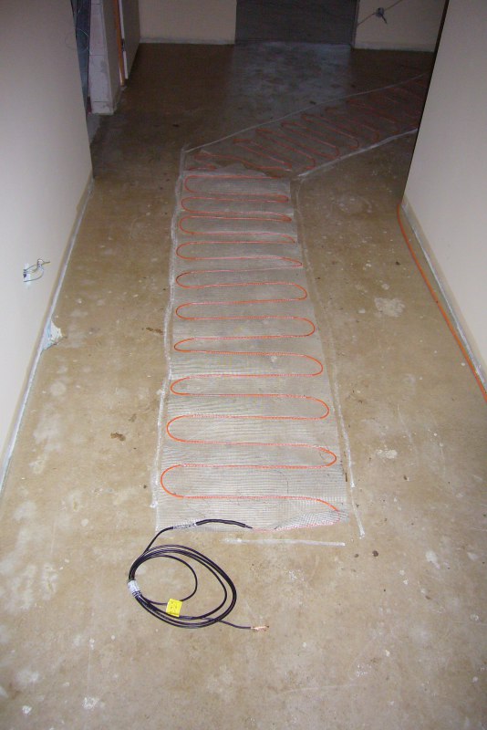 V technické místnosti, koupelně s WC, kuchyni a spížce bude povrchovou vrstvu podlahy tvořit keramická dlažba a autor proto pro vytápění použil elektrické topné rohože ECOFLOOR, které jsou pod tento typ podlahy vhodnější a cenově velmi atraktivní.