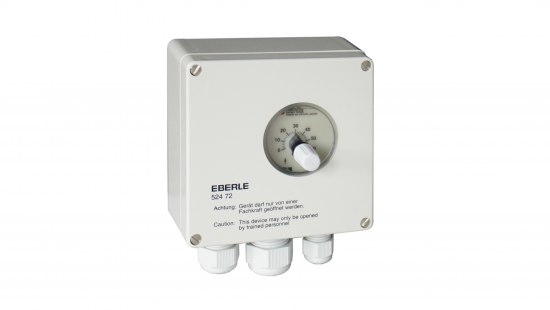 Hodnota za lomítkem v typovém označení termostatu označuje teplotní rozsah: -40…20°C (/20); 0…60°C (/60); 40…100°C (/100); 100…160°C (/160). Termostat má zvýšené IP krytí, může být tedy umístěn ve vlhkém nebo prašném prostředí, např. v garážích, skladech, prádelnách, apod., nebo i ve venkovním prostředí. Teplotu snímá pomocí odděleného kabelového čidla (není součástí termostatu), kabelové čidlo může být v různém provedení – příložné, prostorové, standardní, s PVC nebo silikonovým pláštěm – viz. Čidla k průmyslovým termostatům EBERLE.