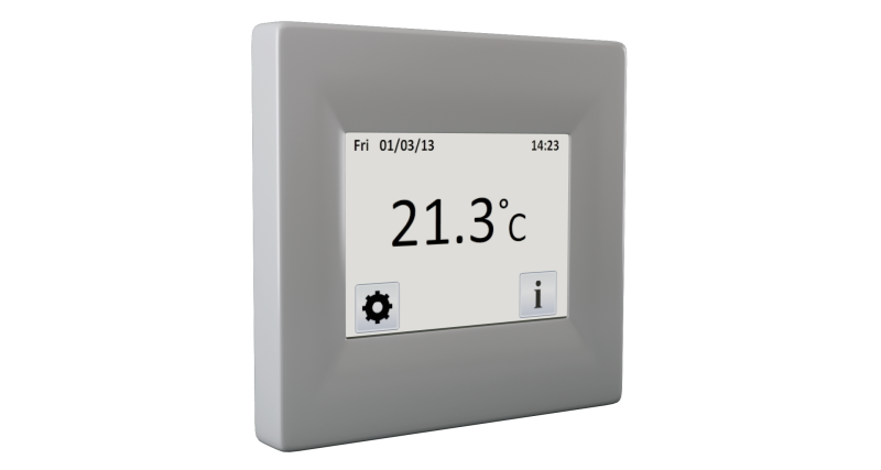 Digitalthermostat mit Touchscreen Display, mögliche Wahl farbigen Hintergrunds, CZ Menü. Betriebsarten „nur Fußboden“, „nur Raum“, „Fußboden+Raum“, mögliche Messung mittels zwei externen Fühler (Fußbodenfühler), PWM (PID) Regelung oder feste Temperaturdifferenz. 4 voreingestellte Programme, 3 Benutzerprogramme (10 Temperaturänderungen in Schritten von 15 Minuten, kleinster Zeitabschnitt 1 Stunde). Moden: gemäß Programm, manuelle Betriebsart, Urlaub, Party, Frostfreie Temperatur, Ausgeschaltet. Schaltkontakt 16A, Einstellungsbereich der Temperautren5…35°C mit Schritt von 0,5°C, mögliche Einstellung der Mindest- und Höchsttemperatur des Fußbodens, Kalibrierung der Fühler. Der Fußbodenfühler ist ein Bestandteil der Thermostatlieferung, Installierung auf KU/KP 68. Schutzart IP 21.