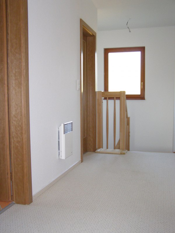 V druhém podlaží jsou jako krytina položeny koberce, proto se investor rozhodl použít k vytápění místností přímotopné konvektory. Podlahové vytápění v koupelnách je doplněno topnými žebříky, které zlepšují dynamiku náběhu teplot a plní i praktickou funkci sušáku ručníků a osušek.